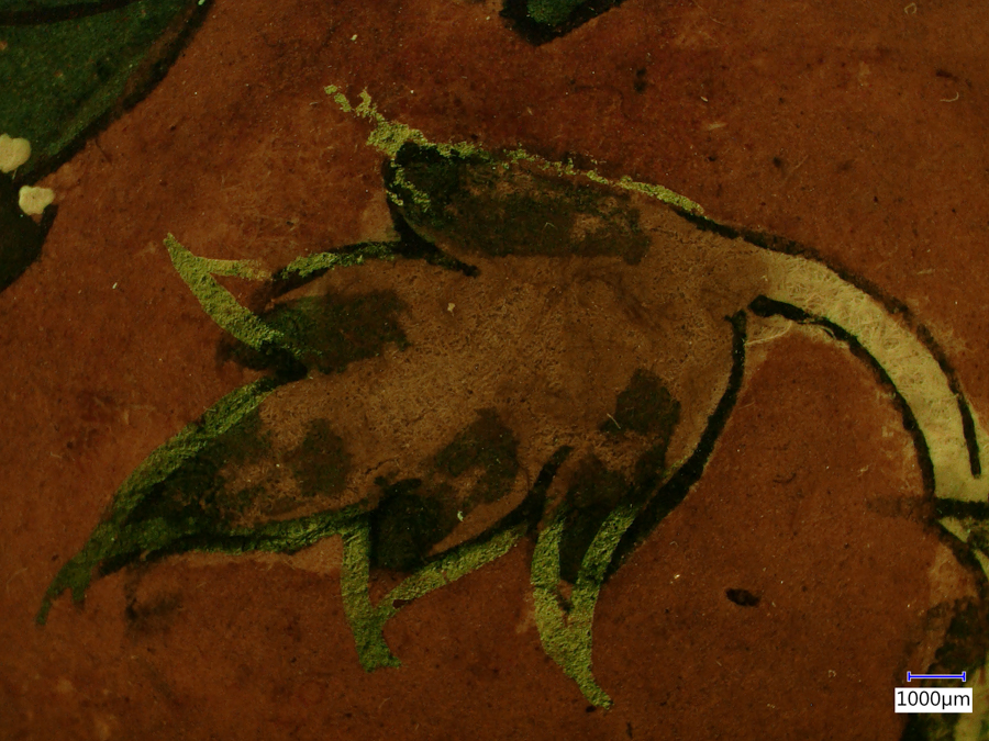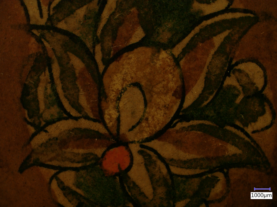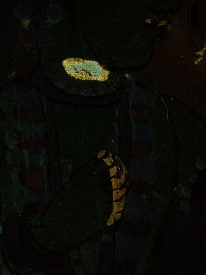 There any number of ways to do the image post-processing. In the past we have done this with MATLAB, but it could also be done with other image processing tools such as ImageJ. Here we present a simple method using Adobe Photoshop (version used – Photoshop CC 2018 v. 19.1.3). As an illustration of the method we are using fluorescence images of a 17th Century Indian painting made with a Keyence model VHX-6000 digital microscope equipped with the VH-ZST lens and the NIGHTSEA fluorescence adaptation kit. The images were made at the Straus Conservation Laboratory at the Harvard Art Museum. (Learn more at this link – Conservation and Fluorescence.)