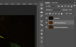 Fluorescence imaging is best done in complete darkness, or at least when it is dark enough that the contribution of ambient light is so low that it is effectively completely underexposed. Sometimes that is not practical. It is not always a bad thing to have some non-fluorescent background as that can give context to an image in which fluorescence manifests as isolated bright areas in a dark background. This can be an artistic, scientific, or just practical choice. But what if you do want to isolate the fluorescence? Image subtraction is one way to do this.