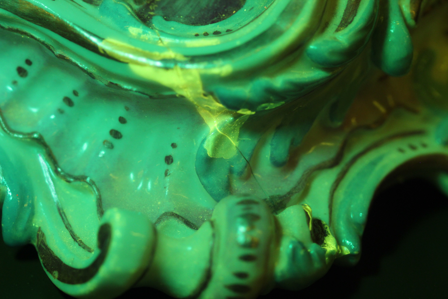2. Repair on a ceramic object. Macroscopic image, Royal Blue excitation.