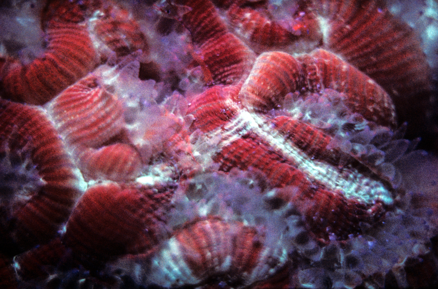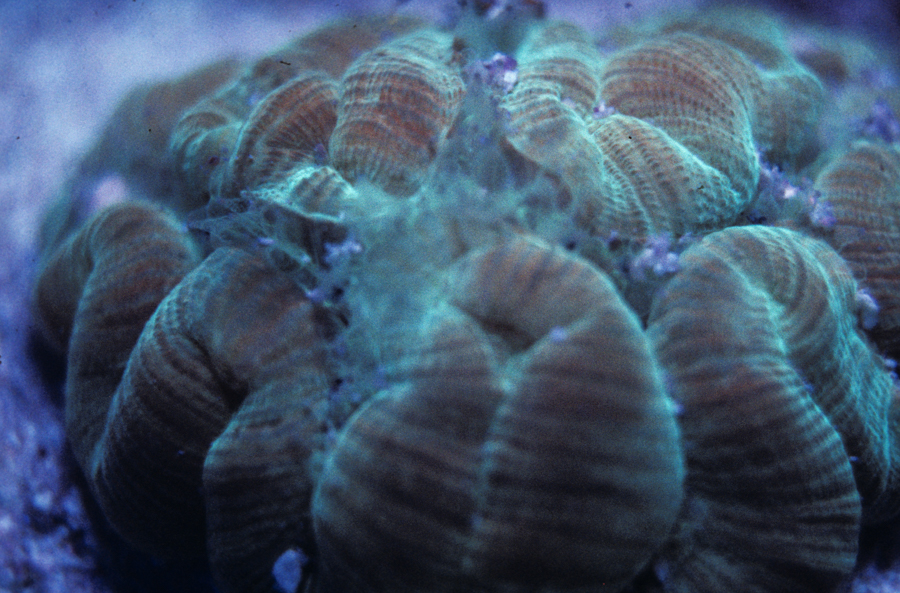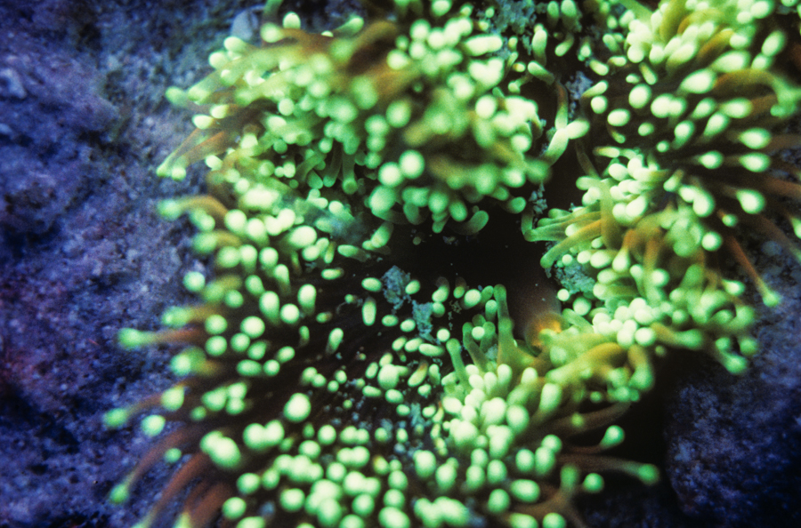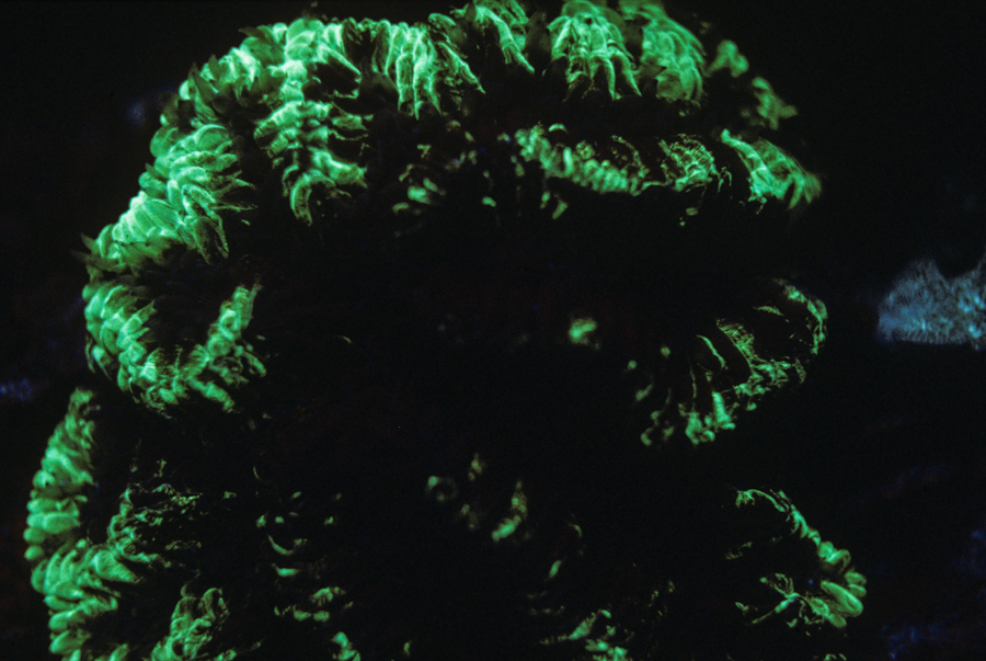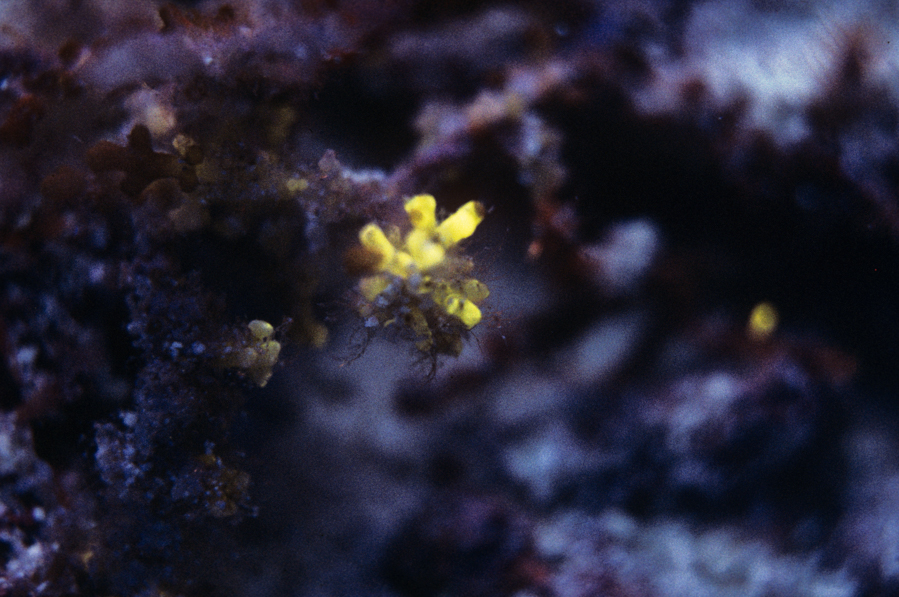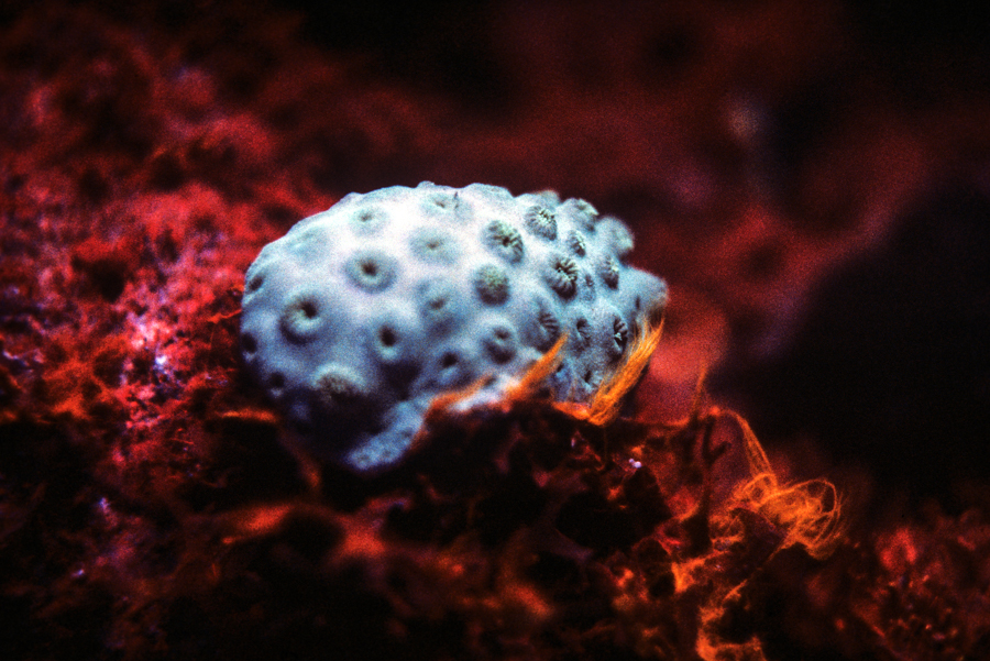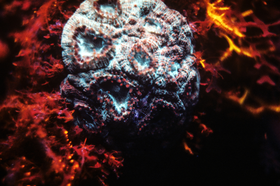 In this and additional galleries (links will be provided when they are posted) I am sharing some of my early underwater fluorescence photographs, the ones that got me started in what turned into a massive life change. The equipment and techniques for finding subjects and taking the photos were tested and ‘perfected’ in dives at Folly Cove, Gloucester, Massachusetts. Once the lights and photo setup were working in cold New England waters it was time to head to the Caribbean.