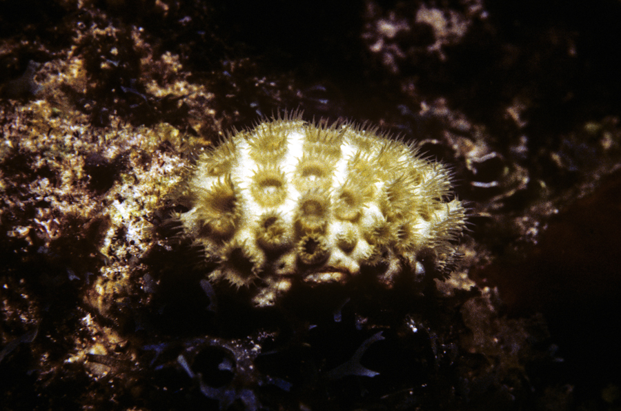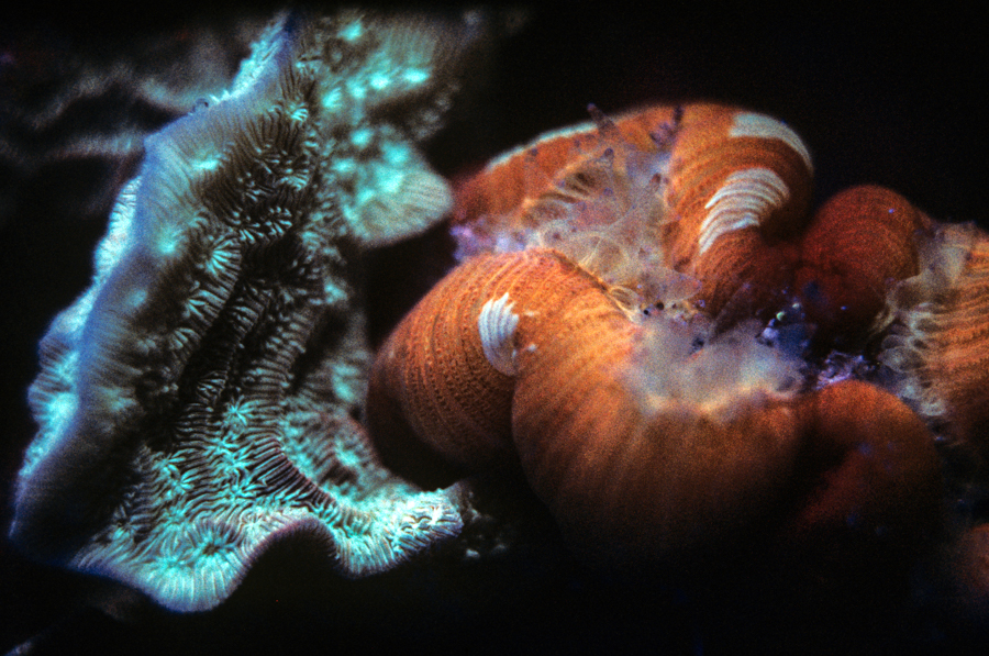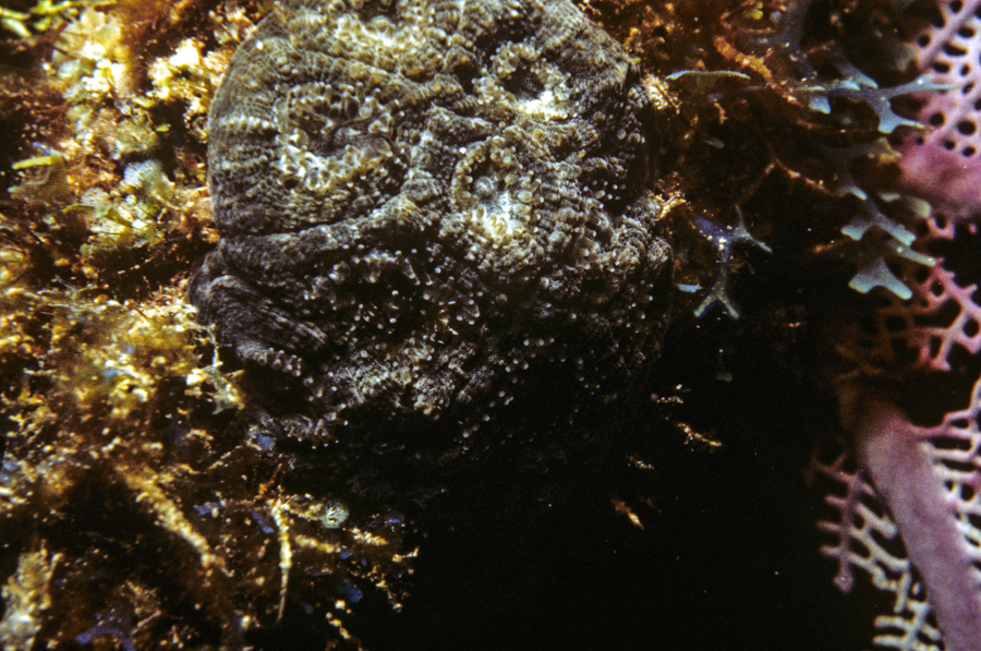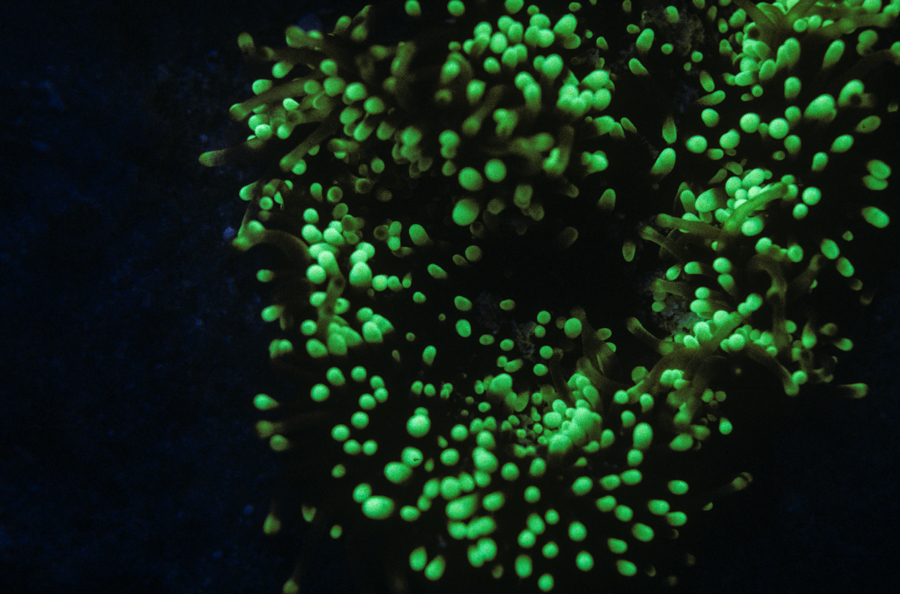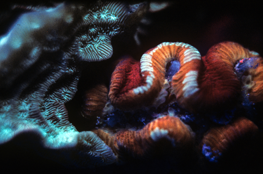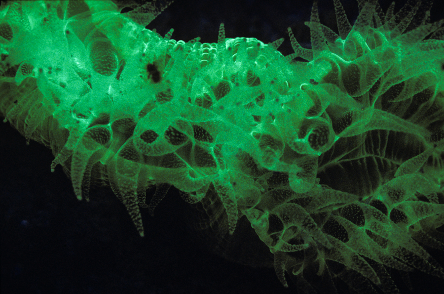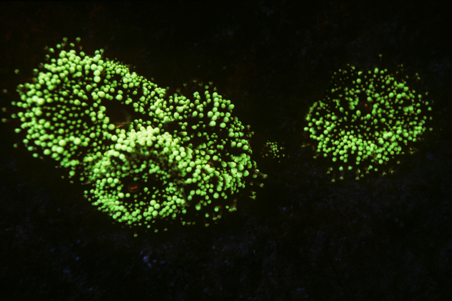In this and additional galleries (links will be provided when they are posted) I am sharing some of my early underwater fluorescence photographs, the ones that got me started in what turned into a massive life change. The equipment and techniques for finding subjects and taking the photos were tested and ‘perfected’ in dives at Folly Cove, Gloucester, Massachusetts. Once the lights and photo setup were working in cold New England waters it was time to head to the Caribbean.