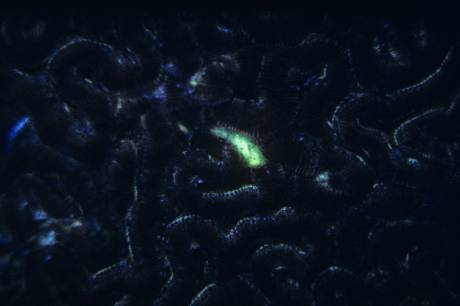 One thing about these images that is different than what virtually everyone – including us – recommends for underwater fluorescence work is that they were done using ultraviolet (UV) light, as opposed to the blue light that is used today. This was before I got into the science and learned that blue light was a generally better choice.